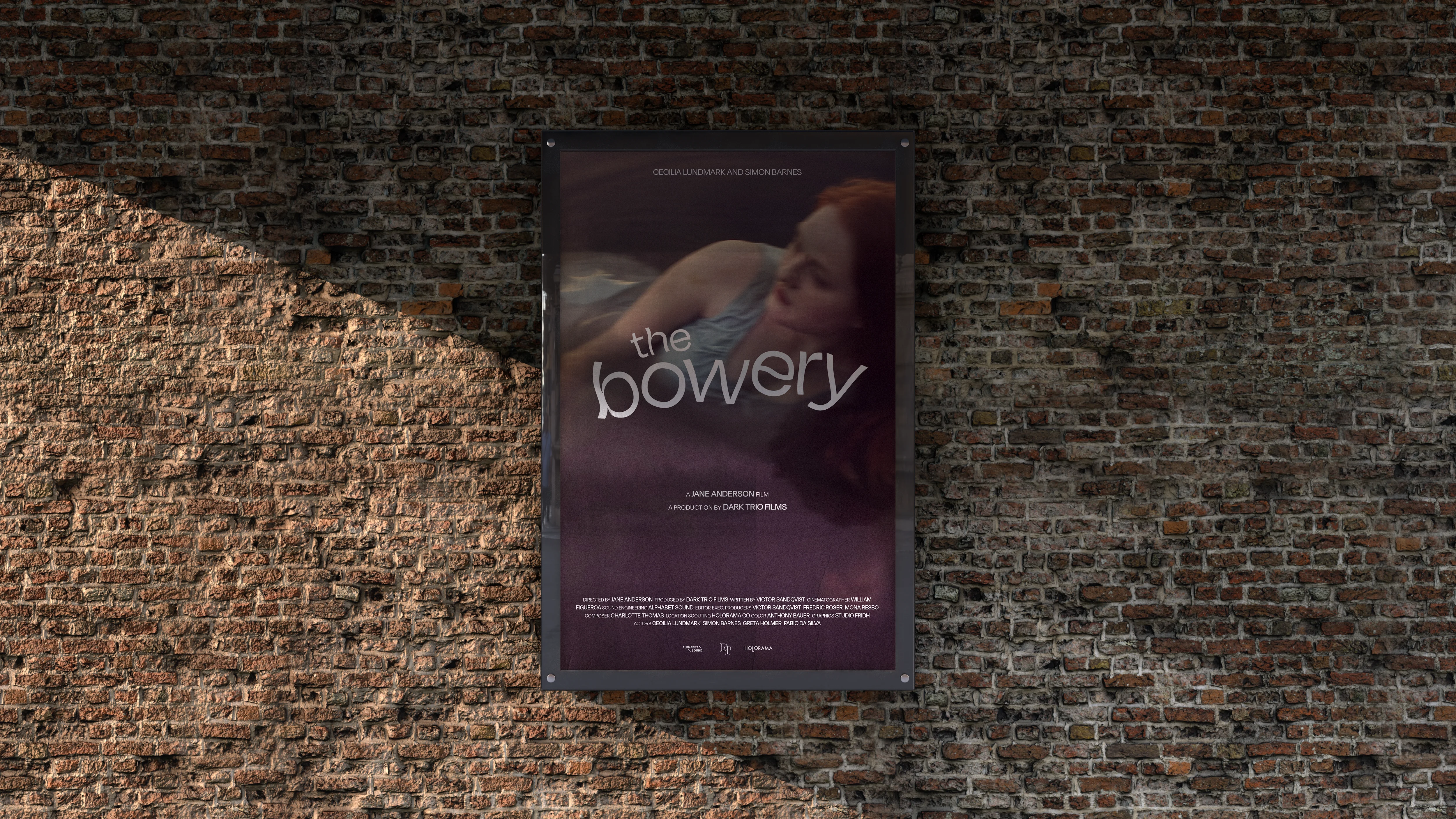 The poster for The Bowery drifts between clarity and blur, echoing the film’s undercurrent of emotional suspension. Influenced by the way dark water distorts what it reflects, the design lets melancholy seep in. Imagery submerged in shadow and the title itself appears slightly skewed, as if warped by memory or movement. Directed by Jane Anderson and produced by Dark Trio Films, The Bowery lingers in the in-between: what’s remembered, what’s imagined, and what quietly disappears.